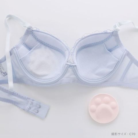 ぷにぷに、ねこの肉球みたいなウレタン成型パッドが、バストトップ下からふんわりやさしくプッシュアップし、自然なまるいバストにととのえます。