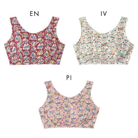 | 仕 様 | ・ホックなし、かぶりタイプ ・パッドなし、パッドポケットなし ・ワイヤーなし ・サイドボーン:なし ・洗濯機可 ※お洗濯は、必ず「取り扱い表示」にしたがってください。 ※アイテムによって柄の出方が異なる場合がございます。予めご了承ください。 |