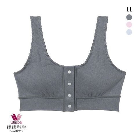 前あきのデザインはラクで着脱しやすく、幅広い年齢の方に着用いただけます。取り外し可能なパッド付き。アンダーバスト部分にはゴムを使用していないので就寝中もしめつけ感が少なく、やさしいフィット感です。
