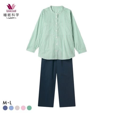 ワコール Wacoal 睡眠科学 レディース シャツパジャマ 長袖 上下セット ストライプ 寝返りしやすい 綿混 YDX509