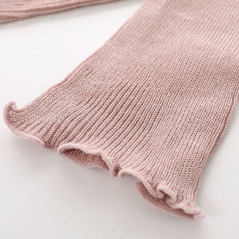 寝るとき用にお使いいただける、シルク混の糸を使用したリブ編み素材のマルチウォーマーです。