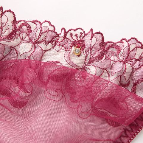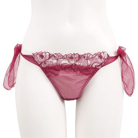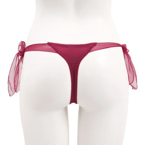華やかなフラワー刺繍のレースに、シアーな質感のチュールドレープがセンシュアスな魅力を演出するTバックショーツ。