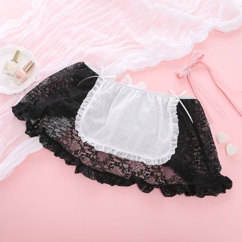 レースを効かせたエプロン風のデザインと、サテンのプチリボンが可愛らしい、メイド服をイメージしたスカートショーツ。