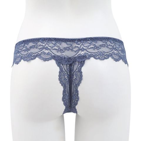 艶やかなサテン地に大胆なカッティングのレースを配した、ラグジュアリームード漂うTバック。
