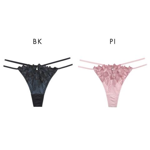 ラメの煌めきを湛えた大花刺繍レースがエレガントなTバックショーツ。