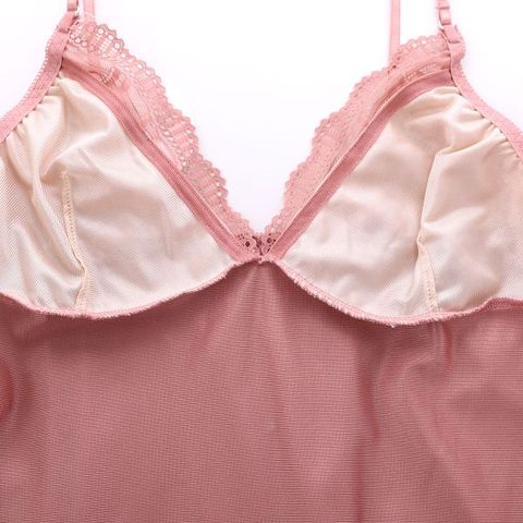 胸元は裏打ちつきで透けにくい仕様。肩紐の長さはアジャスターで調整できます。