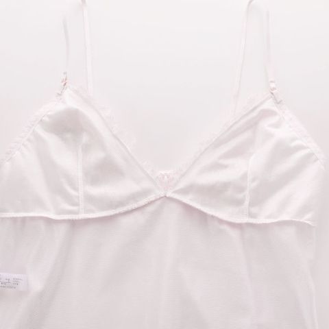 胸元は裏打ちつきで透けにくい仕様。肩紐の長さはアジャスターで調整できます。