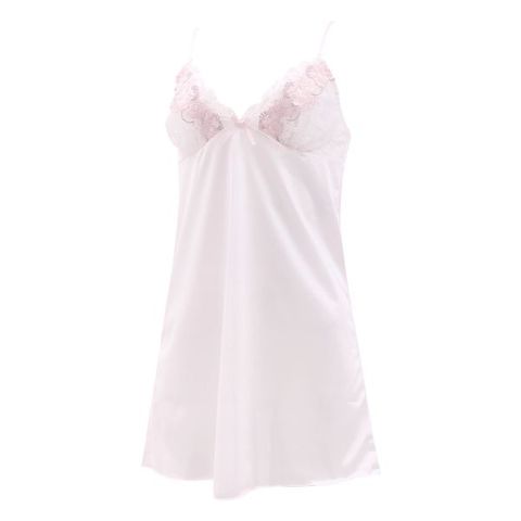 パールアクセサリーを纏ったようなバラのケミカルレースが胸元を彩る、エレガントなスリップ。