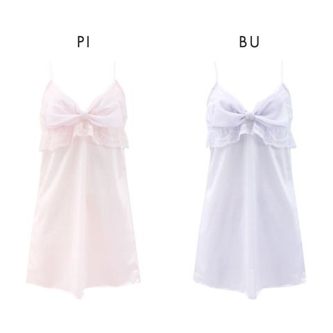 ラメの煌めきを纏ったシフォンのリボンモチーフと、胸下の大きなフリルが可愛いスリップ。