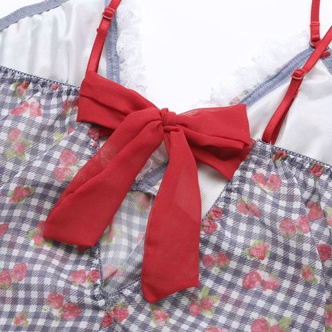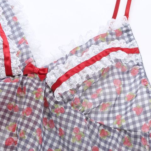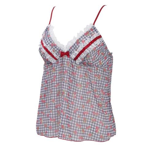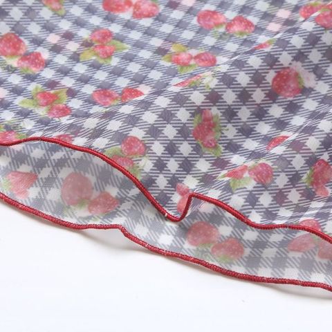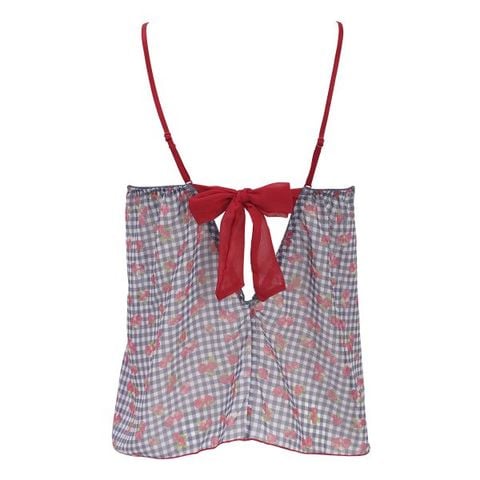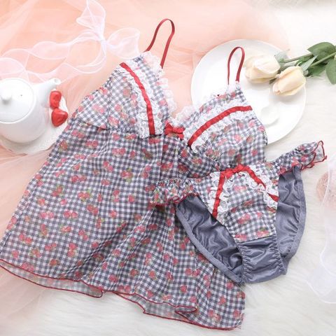ギンガムチェックに苺を散りばめた柄がキュートな、ふんわりシフォンのキャミソール&ショーツセット。