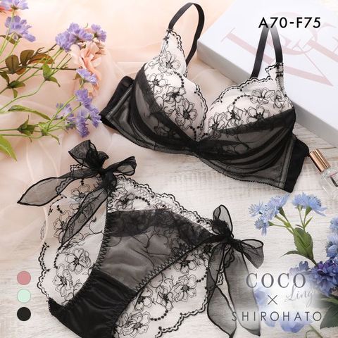 ココランジェ スモーキーヴェール ブラジャー ショーツ セット SHIROHATO別注 谷間 サイドリボン バックレース COCO Linge 大きいサイズ