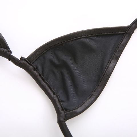 | 仕 様 | ・日本製 ブラ ・三角ブラ ・パッドなし ・肩紐取外し:不可 ・肩紐調節:可能 ・ノンワイヤー ショーツ ・ストリング、身生地に伸縮性あり ・透感:あり ・クロッチなし ・股上:Mサイズ約11cm(※置き寸法) |