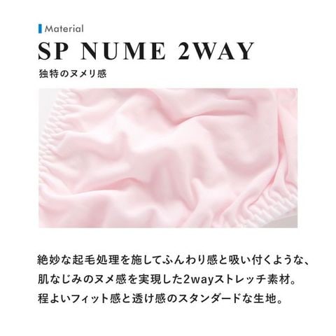 ヌメッとした感触と柔らかい肌触りが人気のSPヌメ2WAYを使用した脇細仕様のハーフバックビキニです。シャープなカッティングでセクシーな雰囲気に仕上がっています。フロントハーフシームです。