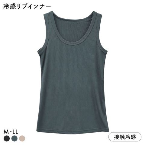 トロンとした生地感が気持ちいい♪接触冷感のタンクトップ。インナーでも、アウターとして1枚で着てもOKなおしゃれリブインナーです。