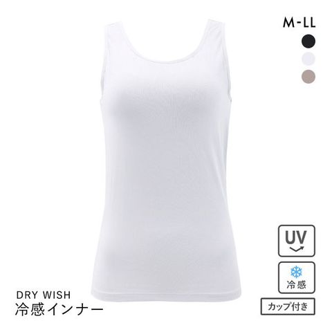 DRY WISH 冷感 カップ付タンクトップ インナー M L LL 吸汗速乾 接触冷感 UVカット ストレッチ ひんやり 熱中症対策
