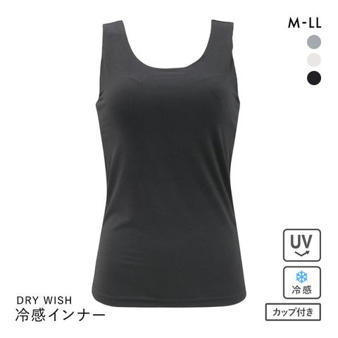 DRY WISH 冷感リブ ブラトップ ブラ内蔵タンクトップ M L LL 吸汗速乾 接触冷感 UVカット ストレッチ ノンワイヤー
