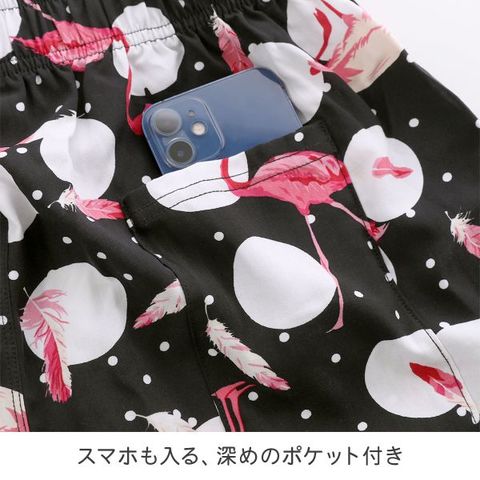右後ろにはスマートフォンも入る、深めのバックポケット付き。お部屋着として、パジャマとして、トップス次第でご近所の用事もこなせちゃう万能ステテコです。