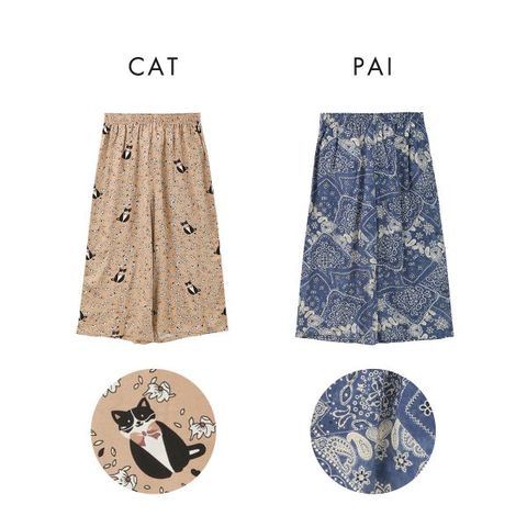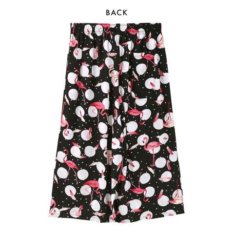 おうち時間がパっと華やかになる、鮮やかなプリント柄がポイント☆ワンマイルウェアにも使いやすいひざ下丈、リラックス感のあるセミワイドシルエットです。