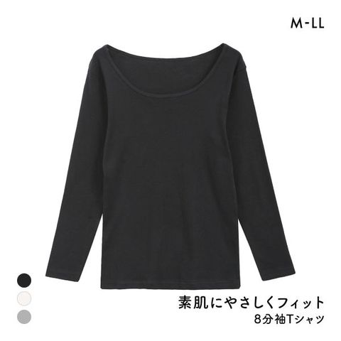 素肌にやさしくフィット 綿100% 長袖インナー 8分袖トップス M L LL ロンT ロングTシャツ 敏感肌 シンプル ベーシック 肌着