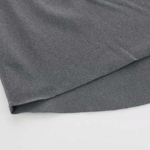 裾は切りっぱなしのフラット仕上げで、アウターにひびきにくく締め付け感のない軽い着心地です。ストレッチ性が高く、動きに合わせてやわらかく伸縮するので、ボディにほどよくフィット。すっきりとしたシルエットで、もたつき・ツッパリ感なく着用いただけます。