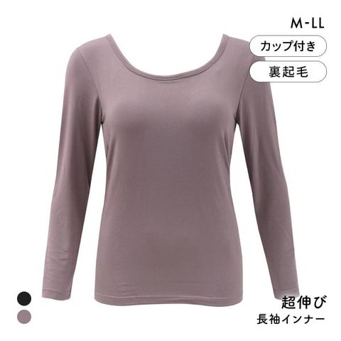超伸び 裏起毛 ブラ内蔵 長袖インナー 8分袖 あったかブラトップ M L LL ラウンドネック 保温 静電気防止 無地 薄手 カップ付き長袖