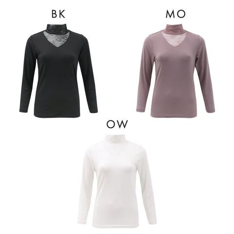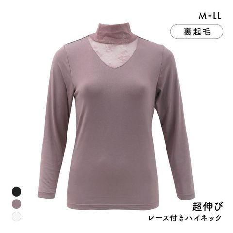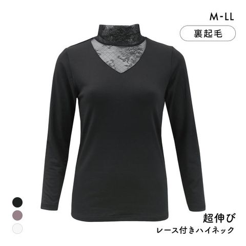 | 仕 様 | ・身丈:Mサイズ約58cm、Lサイズ約60cm、LLサイズ約63cm(※置き寸法) ・8分袖 ・首元レースのハイネック ・ストレッチ素材 ・肌側起毛 ・静電気防止 ・軽量 ・カップ無し |