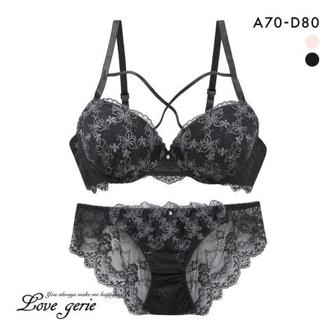 ラブジェリー フラワーバタフライ ブラセット ABCD 盛り胸 Wパッド 谷間ブラ バストアップ ブラジャー ショーツ セット バックレース