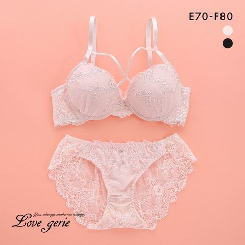 ラブジェリー フラワーバタフライ ブラセット EF 大きいサイズ バックレース 総レース 盛り胸 Wパッド 谷間ブラ バストアップ ブラジャー ショーツ セット