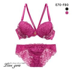 ラブジェリー フラワーバタフライ ブラセット EF 大きいサイズ バックレース 総レース 盛り胸 Wパッド 谷間ブラ バストアップ ブラジャー ショーツ セット