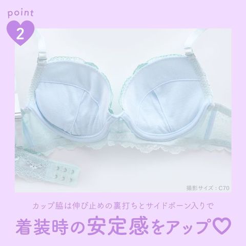 ブラはもっちり下厚モールドカップ+取り外し可能なパッドのWパッド仕様でむっちり谷間をメイク。バストボリュームの調整ができるのも嬉しいポイントです。