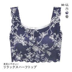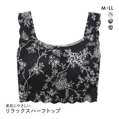 | 仕 様 | 無縫製ハーフトップブラ ・ホックなし ・ステップインタイプ ・カップの深さ:普通 ・パッドあり、取り外し可能 ・肩紐取外し:不可 ・ワイヤーなし ・サイドボーンなし |