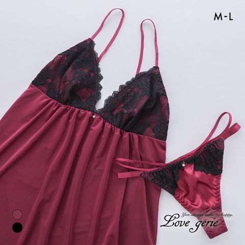 レースから透けるサテンの光沢が小悪魔的なエロスを醸し出す、シンプル&セクシーなベビードール&Tバックショーツのセットアップ。同シリーズのブラセットとのコーディネートをお楽しみいただけます。