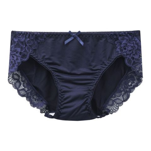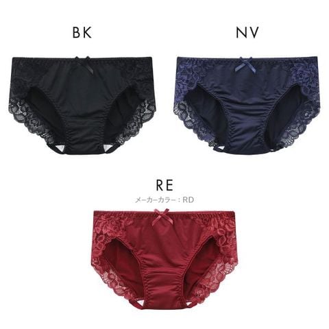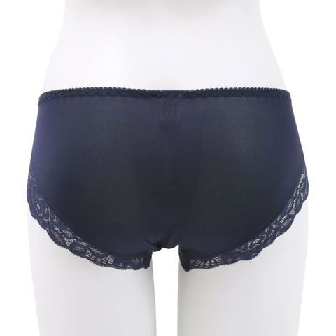 はき込みやや深めで、安心のはき心地。ストレッチ素材で体の動きにフィットします。ヒップ下にレースを付けているので、アウターにひびきにくくなっています。