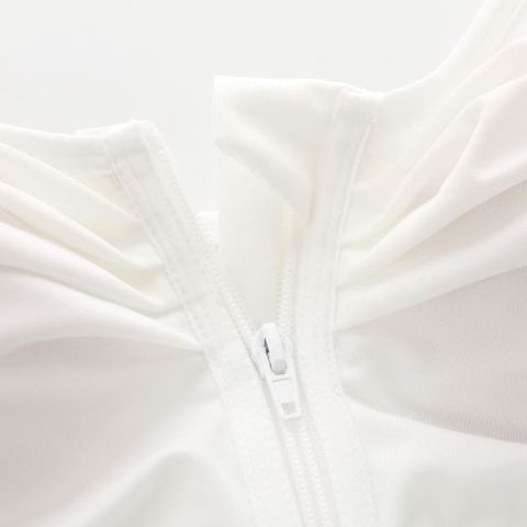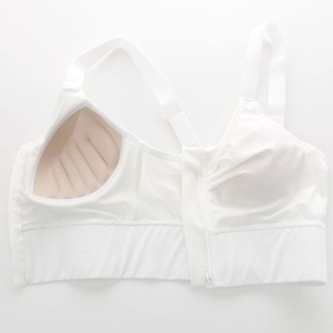 前開きで着脱できるフロントジップ付きなので、汗をかいてもお着替え楽ちん&化粧崩れの心配もなし!ファスナーとお肌の間にはインナーレイヤーがついているので、金具が直接触れない作りになっています。