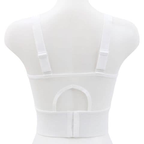 調節可能な幅広ショルダーと、アンダーをぴったりフィットさせられる4段4列のホック付き。背中は熱をにがすホールデザイン。