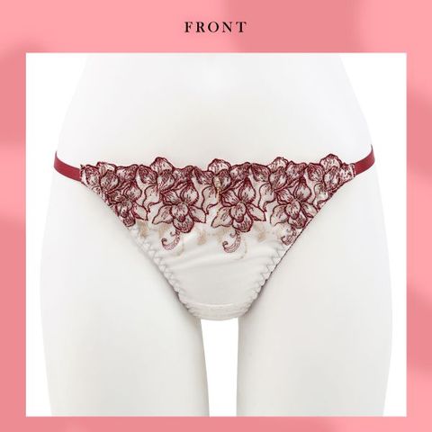 華奢なウエストテープが曲線を強調する、センシュアルな魅力がたっぷりつまったデザイン。フロントにはブラとおそろいのゴールドチャームが華やぎを添えます。