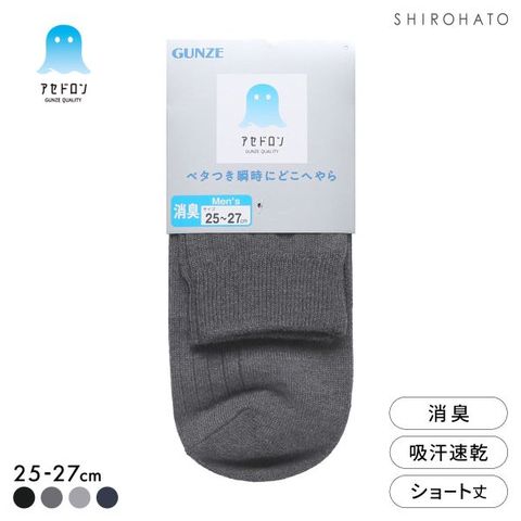 グンゼ アセドロン ショート丈 リブ ソックス メンズ 靴下 ビジネス GUNZE 吸放湿 25-27cm