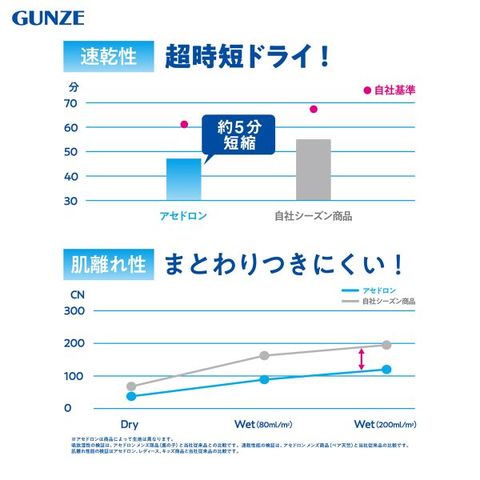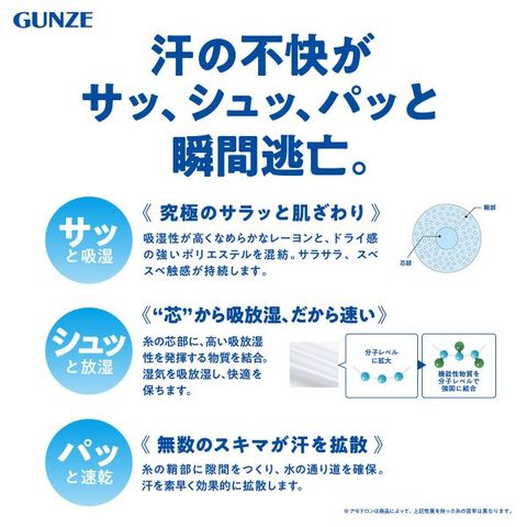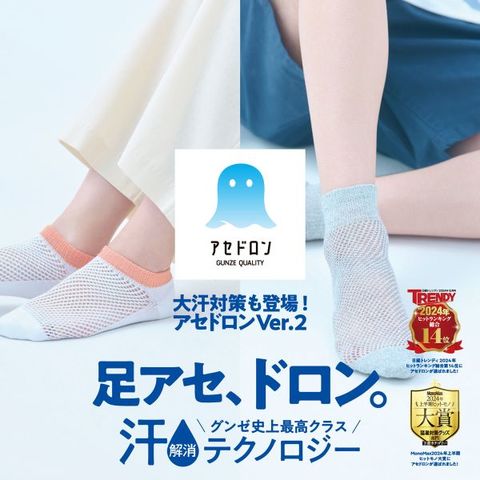 ベタつき瞬時にどこへやら。グンゼ最高クラスの汗解消テクノロジー、アセドロンのショート丈リブソックスです。