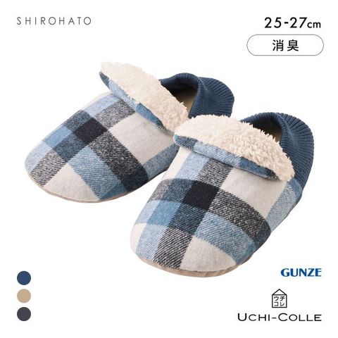 グンゼ UCHI-COLLE バウンドヒーター チェック柄 内ボア ルームシューズ バブーシュタイプ メンズ 発熱 GUNZE ウチコレ