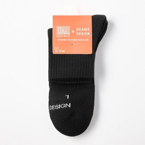つま先にBEAMS DESIGNの文字をあしらったショート丈ソックス。土踏まずを持ち上げ荷重を分散させるアーチサポート設計で快適な履き心地。動いた時のズレ・ずり込みも防止します。