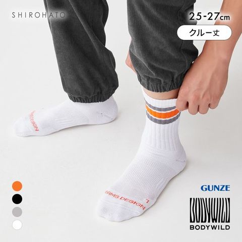 グンゼ BODYWILD by BEAMS DESIGN アーチサポート クルー丈 ラインソックス メンズ 25-27cm GUNZE ビームス ボディワイルド