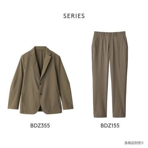 縦にも横にも伸縮性のある2WAYナイロンストレッチ素材を使用。軽くて速乾性にも優れ、水洗いができるのでお家でのお手入れも簡単!セットアップ可能なパンツ(69BDZ155)と合わせてスーツとして着回しできます。ビジネスシーンやリモートワークはもちろん、カジュアルにも適応する便利なアイテムです。