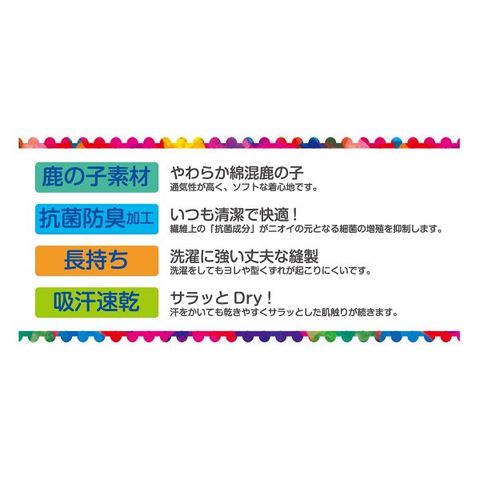 | 仕 様 | ・2枚組 ・抗菌防臭 ・吸汗速乾 ・お名前スペースつき |