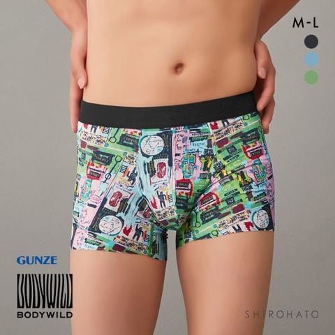 グンゼ BODY WILD バスキアコラボ オールオーバーデザイン ボクサーパンツ メンズ 前閉じ ボディワイルド