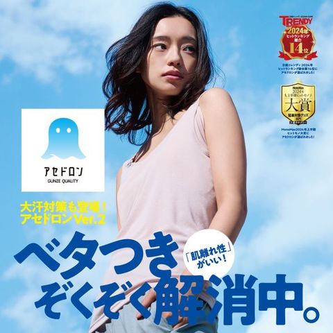 汗を瞬時に吸収し、素早く乾かす構造を再現。グンゼ最高クラスの吸汗速乾テクノロジー、アセドロンから不快な汗をサッ、シュッ、パッと瞬時に拡散する7分丈ペチパンツが登場。