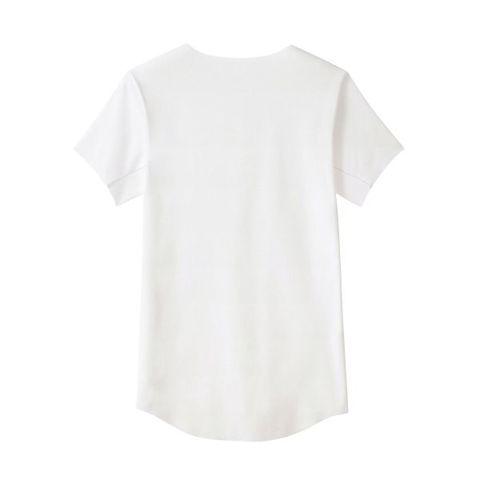 ドレスシャツやポロシャツの襟元からインナーが覗きにくいネックラインと、かがんでも背中が見えにくい後ろ丈長めの立体前後差設計。