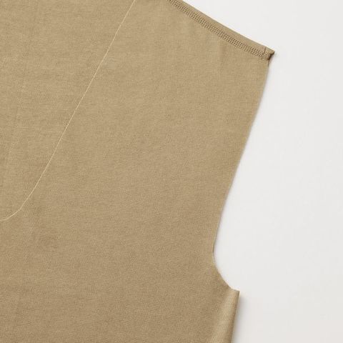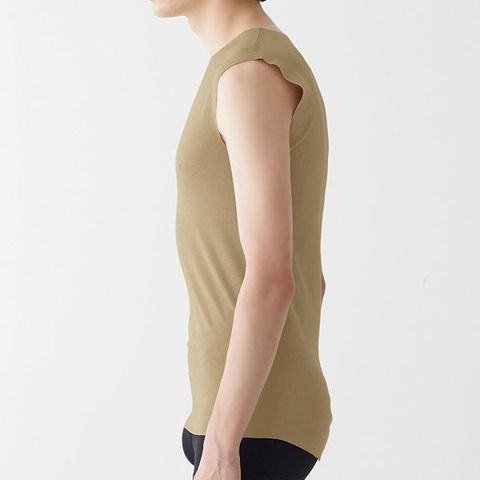 ドレスシャツやポロシャツの襟元からインナーが覗きにくいネックラインと、かがんでも背中が見えにくい後ろ丈長めの立体前後差設計。