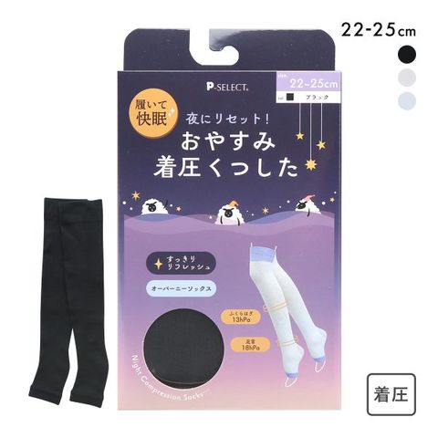 日中の疲れを夜にケア♪眠るときに着用できる着圧オーバーニーソックスです。