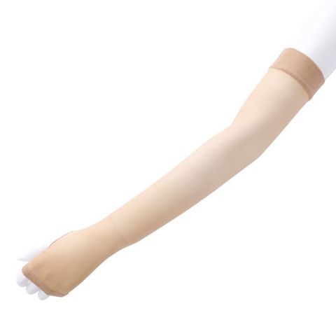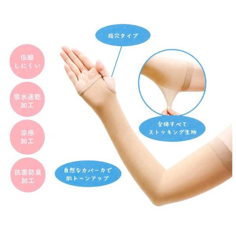 ストッキング生地で気になる傷やシミをカバーしつつ、肌を自然にトーンアップ!まるで素肌のように見せつつUV対策もできる夏の新定番のアームカバー。