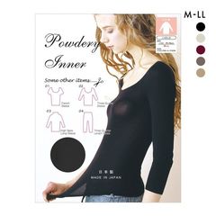 薄くて軽い パウダリーインナー ラウンドネック 長袖 8分袖 キュプラ混 あったか ひびきにくい ML 日本製